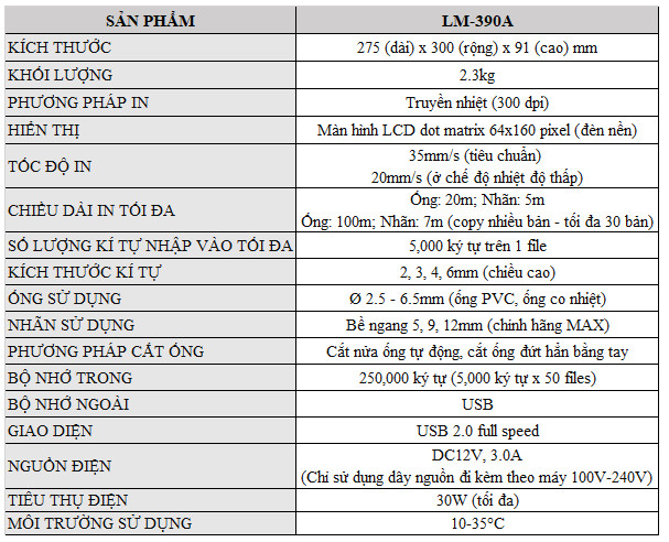 LM-390A có đầu in chịu nhiệt loại mới cho phép in chữ lên ống / nhãn với tốc độ 35mm/giây , tiết kiệm thời gian 30% so với máy in đầu coss LM-380A .